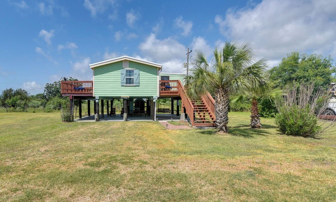 Escape to Crystal Beach and stay at this charming 2-bedroom, 1-bath vacation rental. With 2 decks for sunbathing, a fish cleaning station, a grill, and an outdoor shower on the covered patio, this cottage provides a relaxing atmosphere for your beach getaway — don’t forget to rent a golf cart nearby! Explore attractions like Schlitterbahn Waterpark or take a ferry to Galveston for a day of fun. Don't miss the chance to make lasting memories at this charming Crystal Beach cottage!