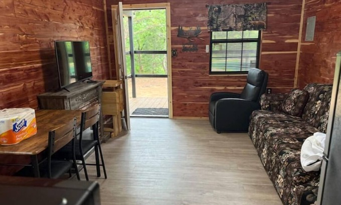 Welcome to Deer Cabin your haven for adventure and relaxation! A charming getaway, where nature and comfort meet in perfect harmony. Wake up in a cozy cabin that sleeps 2-4, nestled by a serene pond. With a gated entry, you'll enjoy privacy and peace from the moment you arrive. Whether you're at the firepit, enjoying a picnic, or trying your hand at catch-and-release fishing (with catfish, perch, bass, and croppie waiting for you), Deer Cabin offers endless opportunities for fun and relaxation.