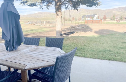 Enjoy the ranch life in a cozy newly remodeled home. If you are interested in skiing, fishing, boating (5 min from the docks), water sports, hiking, hunting, or just being outdoors this is a great location. It has beautiful views of mount Timpanogas, is minutes from Deer Creek reservoir, Sundance Ski Resort, the Provo river and Midway. Deer Valley ski resort and Park City are just 30 minutes away. The house sleeps 16 (view bedroom accommodations) and includes a hot tub, firepit, patios with views, outdoor shower, ping pong, movie room, laundry room, games, stationary bike, a treehouse, swing, pickleball/basketball court, and a bbq. It's a perfect location for a getaway to escape city life. You will share the land with animals, all in their enclosures. 5 day minimum over holidays.