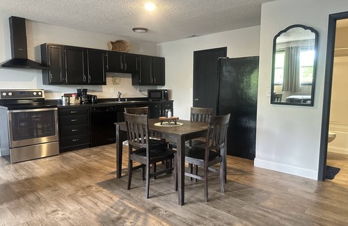 A memorable vacation awaits you in beautiful Lake of the Ozarks! This comfortable, well equipped duplex nestled in beautiful Sunrise Beach, sleeps 6 and sports a shared dock with paddle boards and kayaks. Enjoy nearby eateries, shopping, boat rentals, lake front bars like The Cove, Frankie and Louie's, Captain Ron's (home of the shootout) Bear Bottoms (nearest boat launch) Ozark International Speedway and The Loop. With 2 pleasant bedrooms featuring 2 queen beds, this awesome property is perfect for a relaxing retreat. You'll find all the essentials you need, including AC, a hair dryer, iron, WiFi, a washing machine, and heating. The bathroom is equipped with a hair dryer and a bathtub for your convenience. Fall in love with Sunrise Beach and enjoy the magic it has to offer.