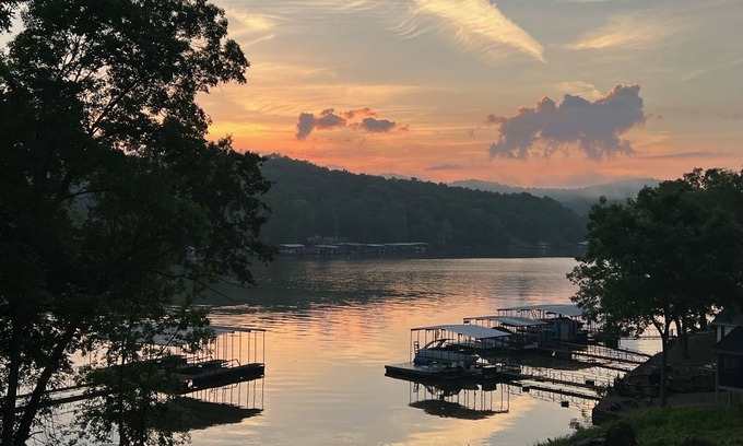 This A frame home has spectacular views of both the main channel and Johnson Brothers Cove! Relax on the wraparound deck with a screened in porch. The primary bedroom is roomy with a king bed and a 55" TV, while the quaint loft has a queen and two full beds overlooking the spacious living room. Double large sliding glass doors give you a beautiful view of the lake!