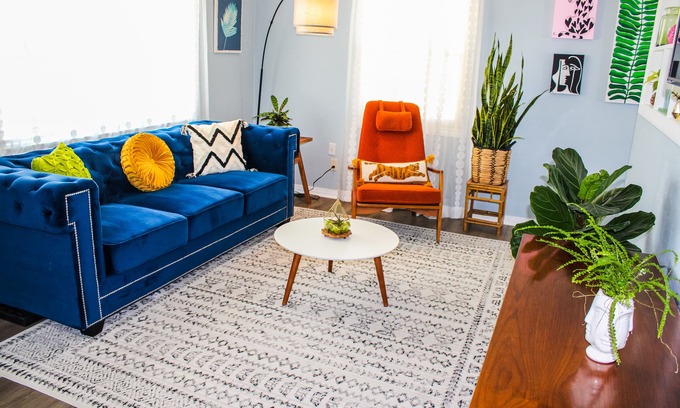 We wanted to create a space where we would like to be, so it was only natural to create an extension of our own home. An antique here or there and just the right amount of quirk. The use of bright colors, natural textiles and tropical greenery breathes life into this space , while creating a chic and relaxing atmosphere. If your traveling for business, a couple or a small family Deja Blue is THE place for you. We would love the opportunity to be your home away from home.