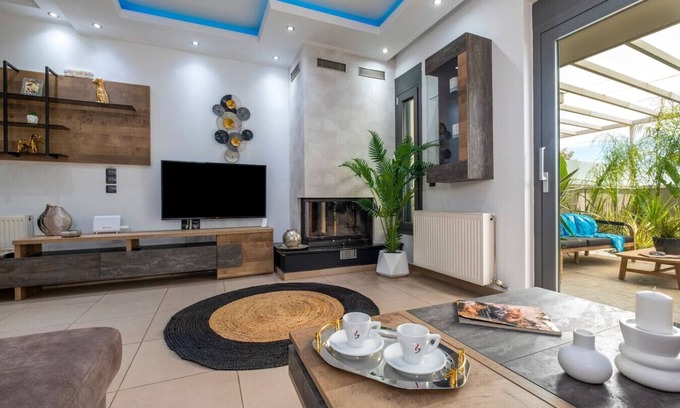 Welcome to Delight Residences | K6 – a modern three-bedroom retreat in Souda, just a 10-minute drive from Chania’s historic center. Designed for comfort and style, this multi-level home combines private wellness facilities, inviting living spaces, and a prime location for exploring Crete.