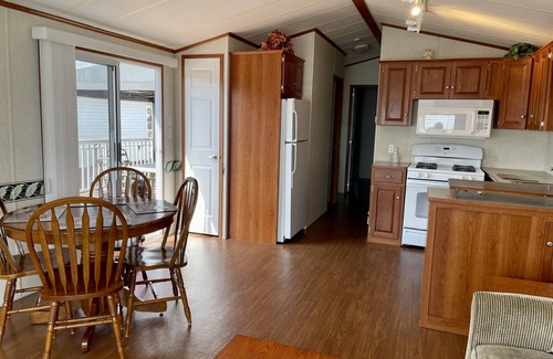 Welcome to Forest Grove #52! This 3 bed, 1 bath home has room for the whole family! Your next vacation awaits! Located close to the park amenities, you will be steps away from the Funplex, Boston Pizza, convenience store, and all the sports courts! The kitchen/dining/living room combo is open concept and spacious. The large deck has room for to enjoy some outdoor living!