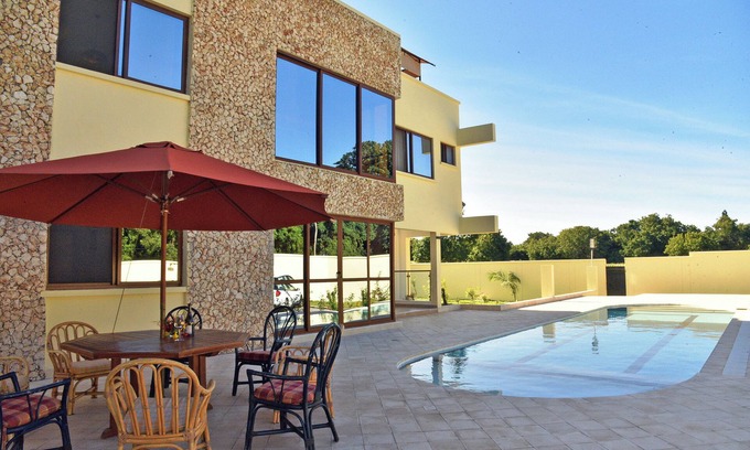 Your home away from home in Diani with 5 bedrooms. The apartment consists of 2x2 bedroom apartments, and 1 studio apartment located in a green, leafy, serene and secure neighborhood just 500m from the beach. This amazing apartment offers a serene and phenomenal escape for guests. With 5 full beds, you'll have plenty of space to relax and unwind. The apartment is equipped with AC and WiFi, ensuring a comfortable and connected stay. The 7 bathrooms, complete with showers, provide convenience for all guests. Whether you're exploring the stunning beaches or immersing yourself in the local culture, this property is the perfect base for your adventures. Feel free to reach out to us during your stay - we're happy to suggest local spots to check out.