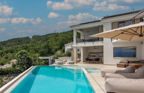 A luxurious, contemporary villa which sleeps up to a maximum of 6 people in comfort. Deluxe Villa Dana is set on the hillside above the town of Opatija, with glorious views across Kvarner Bay. This property is a fabulous holiday retreat, private, comfortable and full of fun for all ages.
