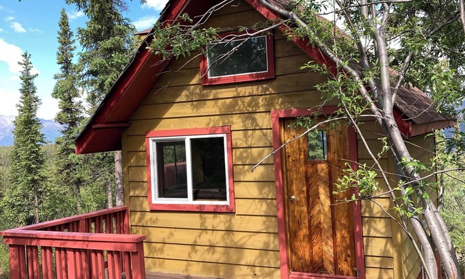 Calling all outdoorsy people - experience the Alaska dream in an quaint, one room cabin perched on a ridge at the edge of Denali National Park. Stunning mountain view from the large picture window. Electricity, outhouse, and outdoor shower with on demand hot water.