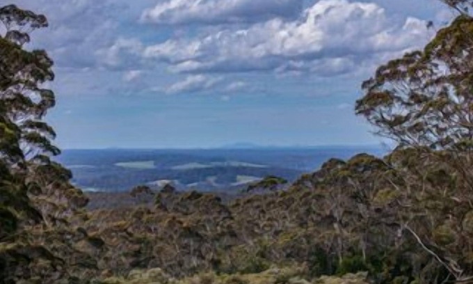 spectacular vista across across Karri forest to the Stirling Ranges.
