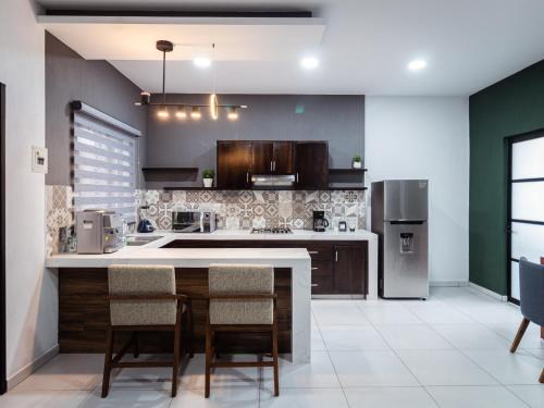 Depas Mololoa offers air-conditioned accommodations in Tepic. This apartment features free private parking and a 24-hour front desk. All units come with a seating area, a flat-screen TV with streaming services, and a fully equipped kitchen. Rooms include a coffee machine, a private bathroom, and free Wifi, while selected rooms also boast a balcony and some have city views. Auditorio Amado Nervo is 4.5 miles from the apartment. Tepic Airport is 9.3 miles from the property.