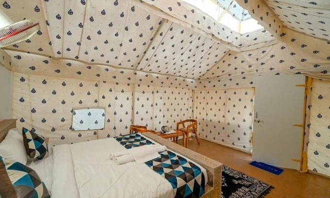 Located in Jaisalmer, 43 km from Jaisalmer Fort, Desert Gateway Camp& Resort provides accommodation with a restaurant, free private parking and a bar. With free WiFi, this 5-star hotel offers room service and a 24-hour front desk. The property is non-smoking and is situated 5 km from Desert National Park. At the hotel, the rooms are equipped with a balcony. Every room has a private bathroom with a shower, free toiletries and a hairdryer. All units at Desert Gateway Camp& Resort include air conditioning and a safety deposit box. Guests at the accommodation can enjoy a buffet or a vegetarian breakfast. Patwon Ki Haveli is 42 km from Desert Gateway Camp& Resort, while Salim Singh Ki Haveli is 42 km away. The nearest airport is Jaisalmer Airport, 37 km from the hotel.