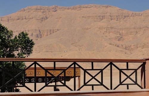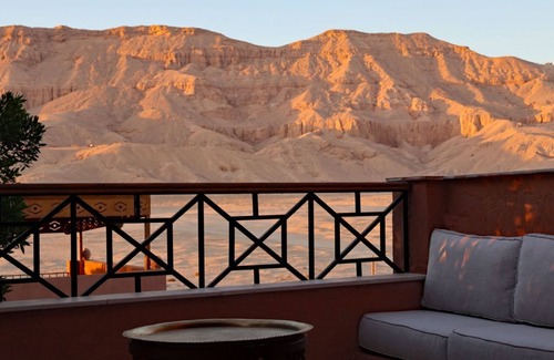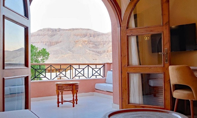 The top floor also houses a shared lounge, perfect for unwinding amidst the expansive desert views. The rooftop terrace is a spectacle of nature, offering panoramic views of the verdant fields, the imposing Habu Temple, the storied Valley of the Queens, the remnants of Amenhotep\'s palace, and the infinite desert.