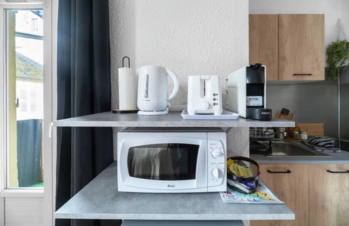 Design apartment in the city center is located in Vieux Vichy. Design apartment in the city center provides accommodation, featuring Wheelchair Accessible, Balcony/Terrace, Accessibility, among other amenities. This Apartment features Wheelchair Accessible, Balcony/Terrace, Accessibility, to make your stay a comfortable one.