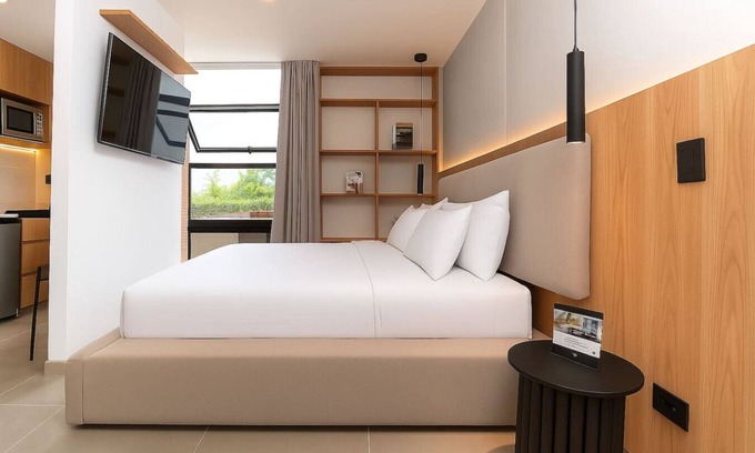 Discover your perfect stay in Medellín, a fully equipped apartment located in one of city’s most strategic zones: El Poblado, just steps from San Diego Mall. Whether you`re a digital nomad, business traveler or leisure explorer, this contemporary apartment studio combines comfort, style and convenience — all within a building packed with exclusive amenities.