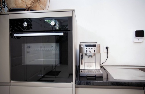 The kitchen has an induction cooktop, oven, refrigerator, dishwasher, plates and cups, cutlery, smart vacuum cleaner, etc. If you don't like to eat at the bar in the kitchen, the salon table can be transformed into a dining table. In the Living Room, you will find a PROJECTOR with Chromecast. Perfect to practice a business presentation or watch a movie together. With Chromecast you can watch some popular streaming services and also login with your account.