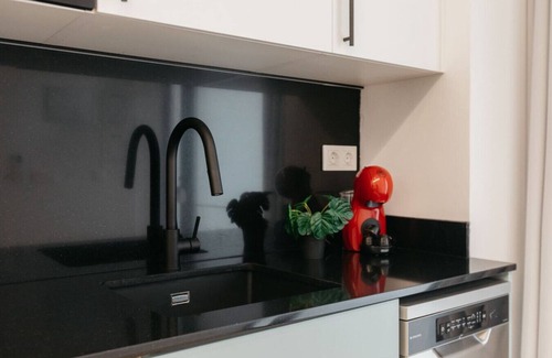- A fully equipped kitchen with a Dolce Gusto coffee maker, microwave, fridge, and dishwasher