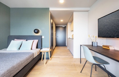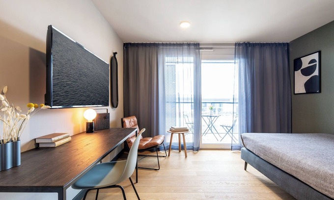 Small but impressive: the Xtra Smart ipartment offers the most important functions for a comfortable stay. Ideal for those who are traveling alone and appreciate an unbeatable price-performance ratio. Work area and a lounge armchair complete this compact unit. Modern technology - from high-speed wifi, bluetooth box to flat-screen TV –relaxes living and working additionally. All ipartments of the XS category dispose of a balcony.