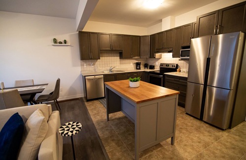 Modern, and professionally designed, 3 bedroom executive townhome located next to community centres, plazas and restaurants in Grimsby. Enjoy 3 parking spaces and incredible features including a 55” 4k Smart TV with Netflix subscription, up to 1GB business-grade fibre optic internet, and a large outdoor patio with BBQ. Perfect for: International Guests; Business Travel; Contracted Teams; Personal & Family Visits. Stylish place to stay is perfect for group trips.