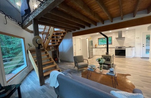 Come relax at our scandi-inspired cabin in the woods. Five acres of pristine woods are the perfect backdrop for our renovated house, making it an ideal weekend retreat away from the busy city life. Discover the best spots in the area, including wineries and breweries, caverns and trails, antique shops, and local makers, only a few miles from the house. Whether you are looking for a restful getaway, a source of inspiration, or a place to stay while you discover Virginia, this is the place for you.