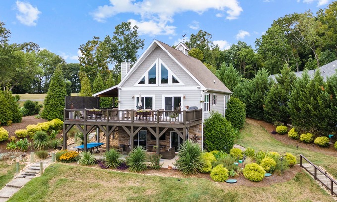 A perfect spot for a lakefront retreat on a very quiet cove! Located on Lake Wylie in Charlotte, NC, this home is family friendly with multiple living rooms, king beds in bedrooms, a custom bunk lounge room with twin XL beds, waterfront views, indoor/outdoor living, outdoor shower, fire pit, etc!
