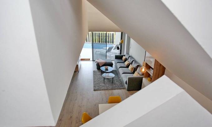 The Casa impresses with its light-flooded construction. The ground floor is the spacious living and dining area, the open kitchen and a guest toilet. Upstairs are the 3 bedrooms and 2 shower rooms located. The house has an 18 sqm saltwater pool and 2 terraces with loungers & lounge furniture, where you can enjoy the sun from morning to evening. With Glolfplatz right outside the door and within walking distance to the sandy beach, nothing to be desired.