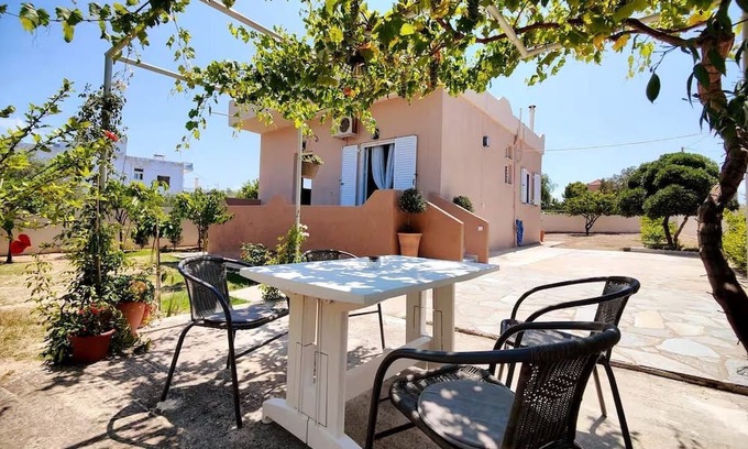 2-bedroom detached vacation house with 2 double beds and A/Cs. Located on a quiet road in Kipseli town, surrounded by a spacious citrus garden.