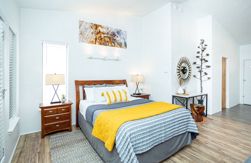 Just 2 miles to charming Old Town Cottonwood, 16 miles to Sedona, 8 miles to Jerome and a 2.5 hr drive to the Grand Canyon. With its light and airy, modern southwest style, you'll feel at home right away! The Casita has a gas kiva fireplace, newly remodeled bathroom with a deep soaking tub, king bed, queen sleeper sofa, and a full kitchen & dining area. The private patio w/2 person hot tub soothes tired hiking muscles. The Casita is beside our main house where we live with our family and pets on 1 acre.