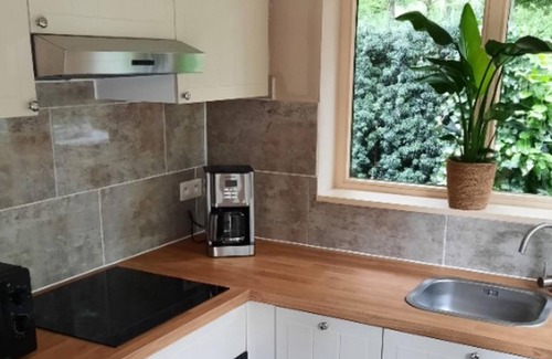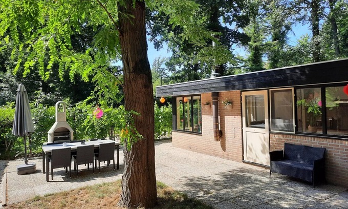 This accommodation is located in bungalow park Sonnevijver, a stone's throw from the historic town of Maastricht, in a green municipality full of beautiful nature reserves. It is very suitable for holidays with the family. From the bungalow park you can enjoy walking and cycling, for example through the Hoge Kempen National Park. The vast heathlands, numerous forests and romantic castle parks of Lanaken are major attractions in the region. You can kayak on the Maas, ski in SnowWorld, shop at the designer outlet Maasmechelen Village and go out for dinner in cozy Maastricht, Genk or Hasselt. The residence was completely renovated in 2022 and has a fully enclosed garden of 500 m² where the dogs can roam freely. In the garden you will find a jeu de boules court, a comfortable lounge set and a spacious dining table. Indoors you have WiFi, Netflix and various board games. Close the day with a relaxing bubble bath.