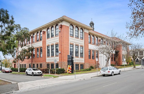 This upscale, 1926 school-turned-apartments are set in a Georgian Revival–style building. You will be greeted with its eclectic elegance and style in this luxury self-contained apartment. Featuring soaring ceilings and a set of stunningly arched feature-windows. You'll find two beautifully appointed queen rooms with comfort and style in mind. Your bathroom boasts a modern-contemporary feel, featuring a rain-shower. Your living area invites cosy ambience with a gas-log fire to escape winter nights. Fully equipped with all mod-cons, the well-stocked kitchen is ready for a gourmet's night in or take a 5 minute walk to one of the nearby restaurants. Enjoy the Nespresso coffee-machine to start the morning, before exploring all that the Geelong CBD has to offer.
