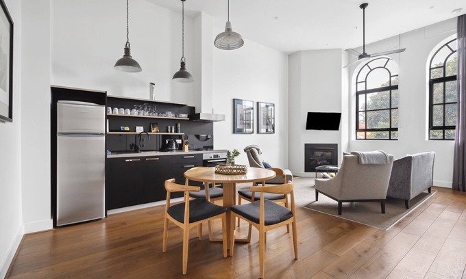 Set in a 1920’s heritage-listed former school, Devlin 103 is a stunning New York-style loft apartment with soaring ceilings, arched windows, and a gas fireplace. Just an 8-minute walk to Geelong’s cafés, restaurants, and shops, it’s the perfect base to explore the CBD, Bellarine Peninsula, and Great Ocean Road while enjoying a stylish inner-city lifestyle near sporting and medical precincts.