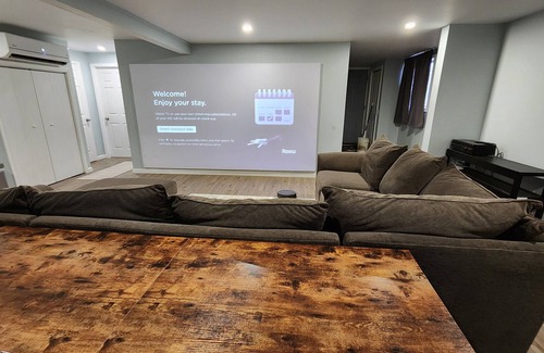 Nestled on 1 acre by Lake Erie, our retreat offers 145" movie nights, fires under the stars, and a wraparound deck. Pets can roam the fenced yard. Enjoy rainfall showers, smart toilets with bidets, heated bathroom floor in the master, plush bedding, and fast Wi-Fi. Cozy in winter, breezy in summer—perfect for work trips, visiting family, or unwinding year-round.
