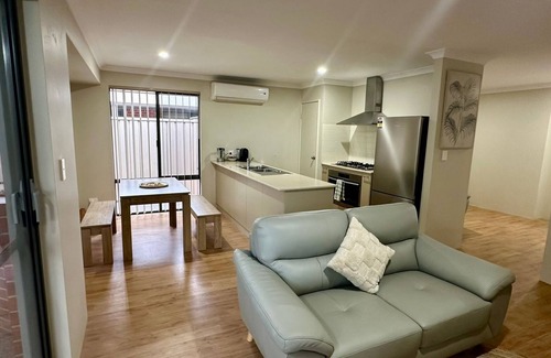 Welcome to our cozy South Bunbury Holiday Home! Nestled in a convenient location, this modern townhouse offers comfort and convenience for your getaway. With three bedrooms, featuring three plush queen beds, and two bathrooms, there's ample space for relaxation. The self-contained kitchen, seamlessly integrated into the open-plan living, dining area, provides everything you need for preparing delicious meals. The laundry has a washing machine for longer stays.