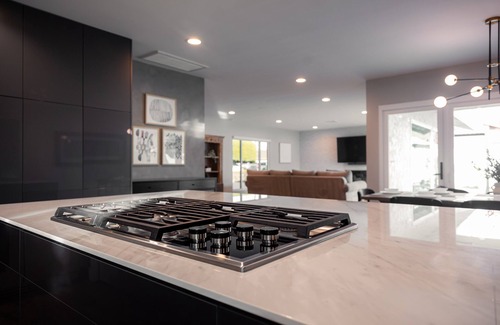 Nestled in a peaceful cul-de-sac neighborhood, our 5 bedroom - 3 bath🏡 home offers a safe, spacious and secure retreat. Thoughtfully furnished bedrooms ensure a cozy night's sleep w/ large white linens. Motorized remote shades & TVs in each bedroom. Dimmers in each room provide an ambiance set by you. Large windows and skylights provide natural light throughout the day. Pool view can be enjoyed in living room, dining area and master bedroom 😌