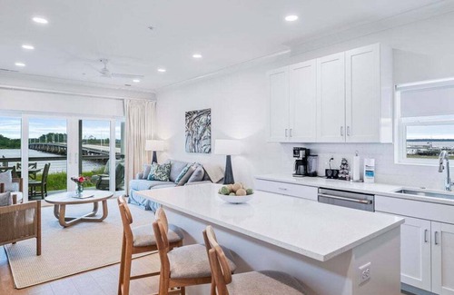 DETAILS: Winyah Bay Club features 17 stylish, individual cottage units, each ideal for large wedding parties, golf enthusiasts, and families. This cottage offers two spacious bedrooms, two and a half baths, and a master suite with breathtaking water views. The open-plan living room, kitchen, and dining area on the second floor are designed to maximize the stunning waterfront vistas, making every stay memorable and luxurious.