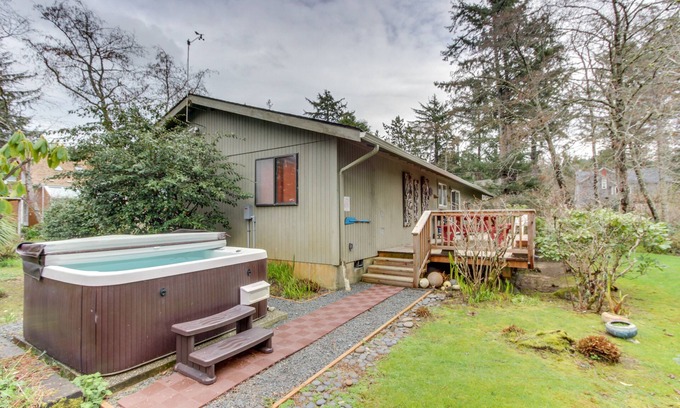 Dog-Friendly Cottage with Private Hot Tub, Deck, Berry Bushes, & Beach Access is located in Cannon Beach. Dog-Friendly Cottage with Private Hot Tub, Deck, Berry Bushes, & Beach Access provides accommodation, featuring Laundry, Parking, View, among other amenities. This House features Laundry, Parking, View, to make your stay a comfortable one.