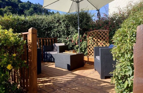 An enclosed, spacious terraced garden with two separated decking areas for barbecues and morning coffees—each with its own breathtaking distance view of the sea and harbour.