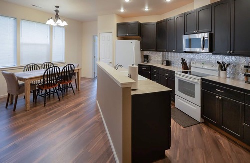 This lower-level Walla Walla duplex is located in the College Place subdivision right next to Walla Walla University, so it's great for professors, visiting alumni, and parents alike! With two bedrooms and WiFi, this dog-friendly duplex is a convenient home base when visiting this vibrant college town. You'll have a nicely decorated living room (including locally made furniture), a 42-inch flatscreen TV with cable. You can settle back into the overstuffed furniture and open up that bottle of local wine for a relaxing evening. A full kitchen has everything you'll need for preparing meals including a dishwasher for easy clean-up. The space is bright and open and looks out at the dining room table so socializing while fixing a meal or cleaning up is easy.