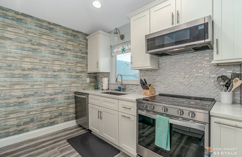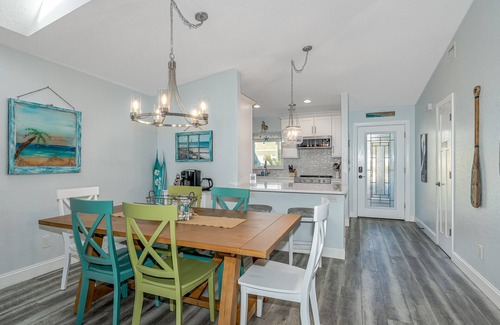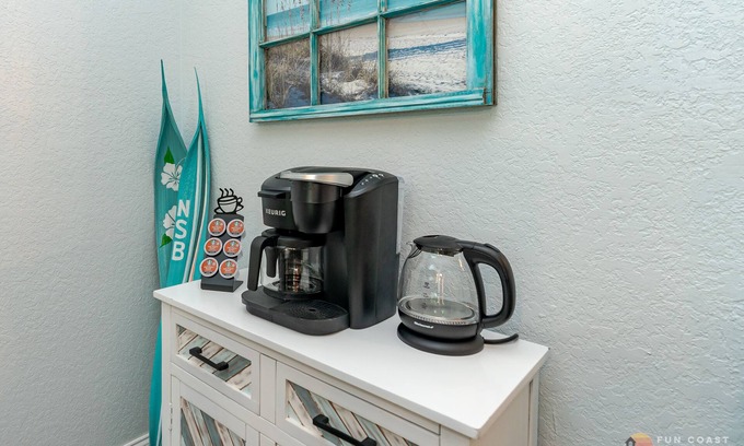 My oh my, if it isn't the sweetest little vacation home in New Smyrna Beach–just STEPS from the beach! This one-of-a-kind 2 bed, 2 bath nautical-themed home is full-featured and exquisitely decorated with custom local art pieces throughout. From the modern fully equipped stainless steel kitchen with coffee bar, to the spacious and beautifully appointed private fenced yard, Sandy Toes is sure to put you in the beachiest of moods for your stay in NSB!