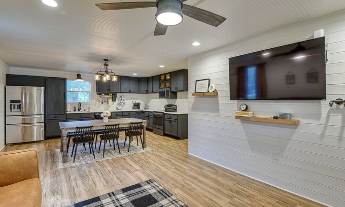 Nestled in the Dallas-Fort Worth suburbs awaits this modern-country vacation rental! This bright 2-bedroom, 1-bathroom house serves as the ideal home base, featuring white shiplap walls, a fully equipped kitchen, Smart TVs, and more. Take the dogs to Mockingbird Nature Park, go swimming or fishing in Joe Pool Lake, and explore big attractions like the Dallas Zoo. Retreat to the private yard for a relaxing evening under the stars, followed by a movie beside the wood-burning stove.