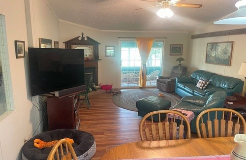 This brilliant mobile home where my mother stays when she visits in Monticello offers 3 cozy bedrooms - one with a queen bed, one with a bunk bed, and one with a twin bed. With 2 bathrooms equipped with a hair dryer, this serene retreat is perfect for families or friends looking for a peaceful getaway. Enjoy modern amenities like a washing machine, AC, WiFi, heating, and an iron during your stay. A great place to call home while you're away, we hope you enjoy your stay. My dear mother keeps clothing in the dresser & closet, there are limited food in the fridge & pantry.