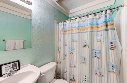 When you're not exploring the island, you'll love spending your leisure time at this unique, family-friendly retreat. Beautiful hardwood floors create a cool, comfortable place to relax while watching TV or surfing the free WiFi. Pick up some fresh fish from the market and fix yourself a delicious seafood dinner in the fully equipped kitchen, then head downstairs to the covered mezzanine to dine in the open air as the ocean sparkles in the distance. For a small fee, you can even bring your canine friends along to join in the fun too! (Two dogs max, please.)