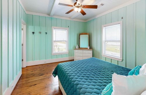 This home lies on the secluded Bolivar Peninsula, about 30 miles from Galveston and just outside the small town of Gilchrist. With the sand and surf just a few steps away, you'll have incredible access to one of the most uncrowded stretches of beach on the Texas coast. Fly a kite in the breeze or wade in the warm water to your heart's content! For a change of pace, head east to the Smith Oaks Sanctuary for world-class birdwatching, or catch a free concert at Stingaree Restaurant and Marina.