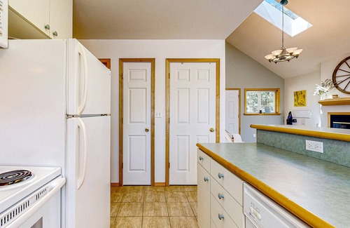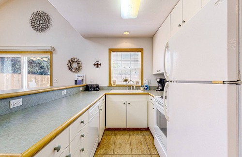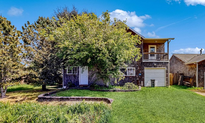 This family-friendly getaway, aglow with natural light, is an ideal home base for those looking to take a break in a secluded, natural setting. Come inside and settle into the main living area where there's plenty of room for you and your group to gather around the wood-burning fireplace. Play a little music on the record player and challenge your friends to an entertaining foosball match or a dart-throwing competition in the game room. Or head upstairs to the cozy loft to stream your favorite TV channels or streaming services, play some board games, or challenge yourself to a puzzle. The private washer/dryer will allow you to pack lightly and help you stay on top of your laundry during your stay. The well-equipped, full kitchen features full-size appliances, utensils, cooking equipment, and a breakfast bar for casual meals. And outside, sit by the fire pit and watch for visiting birds as well as grazing deer and elk, or treat yourself to soothing baths in a private hot tub. Enjoy this warm and inviting home fitted with everything you and your guests need for the perfect vacation all close to the water for kayaking, fishing, crabbing, and clamming as well as Nehalem Bay State Park with picnic areas, a convenient boat launch, and a forested, 1.8-mile long bike path.