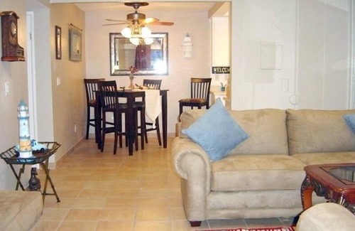 'We stayed at this 2 bedroom 2 bath condo in Dana Point....What a pleasant surprise and how wonderful and updated it is. Very central to Dana Point and Pacific Coast Highway #1 and I 5, which can get you anywhere on the Coast. The pool and jacuzzi was highly used most days by us also, and everyone so friendly. At the condo, it is fully equipped with all necessities of 'HOME'. My hubby kept commenting, maybe we should just move in permanently, as it is all equipped. Clean is not the word, but very clean surely is! Again we will come back and enjoy this condo. Our month's stay was very good, and enjoyed this location for shopping, beach, restaurants, sightseeing, etc.... Noreen & Joe, from OHIO ' - Noreen B Broadview Hts Oh,