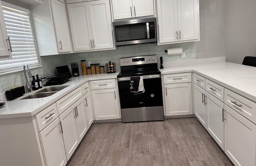 Located in Weslaco, enjoy what this 2-bedroom townhome has to offer. This adorable property features 2 queen beds in each bedroom, along with a cozy living room space with 2 additional queen beds. With amenities like a washing machine, hair dryer, and WiFi, guests can relax and feel right at home. We serve a variety of breakfast cereal with coffee and tea options. Enjoy some snacks like popcorn or ramen noodles. The 2 bathrooms offer both a shower and bathtub for ultimate convenience. It's easy to see why you'll be able to unwind at our place.