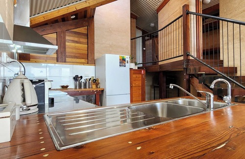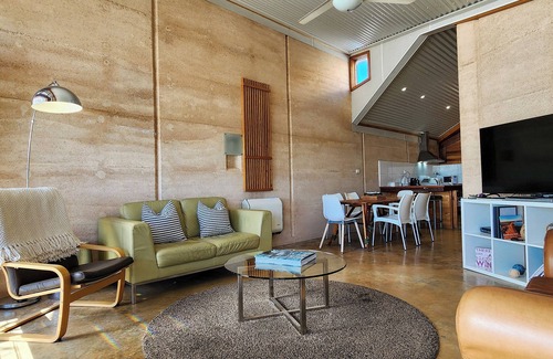 The eco-friendly rammed earth, split-level, modern 2 bedroom, 2 bathroom property is beautifully appointed.