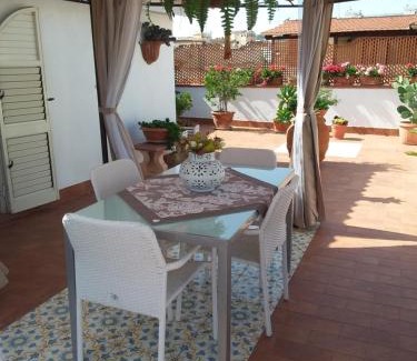 Food & DrinkBottle of water, Tea/Coffee makerBathroomBody soap, Bidet, Shampoo, Toilet, Toilet paper, Shower cap, Hairdryer, Free toiletries, Private bathroom, Shower, Towels, BathrobeMedia & TechnologyMobile hotspot device, TV, Flat-screen TVGeneralIroning facilities, Tile/Marble floor, Heating, Air conditioning, Iron, Key access, Mosquito net, Private entrance, Trash cansKitchenKitchenette, Electric kettle, Cleaning products, Coffee machine, Kitchenware, Stovetop, Kitchen, Refrigerator, Washing machine, Dining table, OvenLiving AreaDining area, SofaBedroomLinens, Childrens' cribs, Wardrobe or closetOutdoorsOutdoor furniture, Outdoor dining area, TerraceAccessibilityUpper floors accessible by stairs onlyBuilding CharacteristicsSemi-detachedRoom AmenitiesNon-feather pillow, Socket near the bed, Drying rack for clothing, Adapter, Fold-up bed, Clothes rackViewQuiet street view |