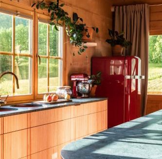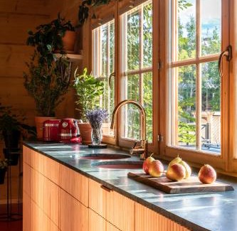 Food & DrinkChocolate/Cookies, Tea/Coffee maker, Bottle of waterGeneralCarpeted, Ironing facilities, Heating, Private entrance, Smoke Alarm, Iron, Carbon monoxide detector, Safe, Fire extinguisher, Trash cansMedia & TechnologyFlat-screen TV, Cable channels, Pay-per-view channels, TVBathroomShared toilet, Walk-in shower, Towels, Shared bathroom, Toilet paper, Free toiletries, Shampoo, Conditioner, Bathtub or shower, Shower cap, Hairdryer, Body soap, Private bathroom, Bathrobe, Toilet, Guest bathroom, SlippersActivitiesSauna, Hot tubKitchenDishwasher, Kitchenware, Washing machine, Microwave, Cleaning products, High chair, Wine glasses, Electric kettle, Toaster, Oven, Kitchen, Coffee machine, Dining table, Refrigerator, Stovetop, KitchenetteLiving AreaDesk, Sofa, Fireplace, Dining area, Sitting areaBedroomChildrens' cribs, Linens, Wardrobe or closet, Walk-in closetViewMountain view, ViewOutdoorsOutdoor furniture, Outdoor dining area, Terrace, BarbecueAccessibilityToilet with grab rails, Roll-in shower, Shower chair, Upper floors accessible by stairs onlyBuilding CharacteristicsDetachedRoom AmenitiesClothes rack, Sofa bed, Drying rack for clothing, Socket near the bedEntertainment & Family ServicesBooks, DVDs or music for children, Board games/puzzlesInternetGame console - PS4Cleanliness & disinfectionHand sanitizer |