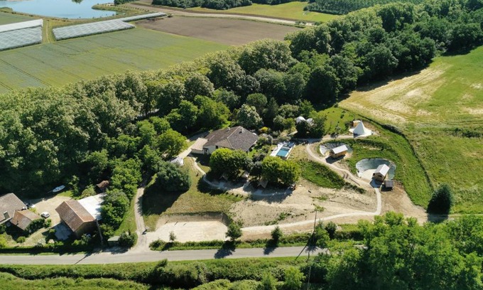 Domaine QUIESCIS in Marcellus provides accommodations with free bikes, a garden, and a bar. Guests can go for a swim in the pool with a view. There's a picnic area and guests can make use of free Wifi, free private parking, and an electric vehicle charging station. Every room includes a shared bathroom with a shower and a hair dryer, while selected rooms come with a terrace. You can play table tennis at the campground, and the area is popular for cycling and hiking. Walking tours can be enjoyed nearby. Marmande Golf Course is 8.1 miles from Domaine QUIESCIS, while Casteljaloux Golf Course is 17 miles away. Bergerac Dordogne Périgord Airport is 40 miles from the property.
