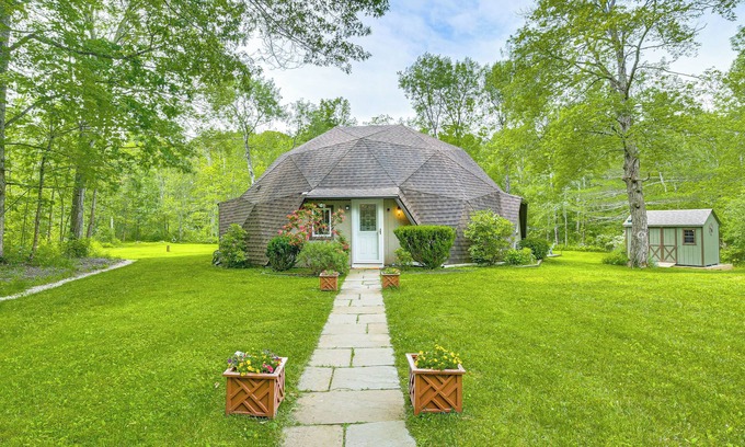 Discover a one-of-a-kind retreat in Connecticut's Litchfield Hills at this 3-bedroom, 2-bath vacation rental in Warren. Nestled on a secluded and tranquil 2.5-acre property, this peaceful home is surrounded by scenic trails and wineries. Whether you're hiking at Kent Falls, sipping wine nearby, or relaxing by the fire pit, you'll find that this unique dome house offers a blend of nature and charm — no matter the season!