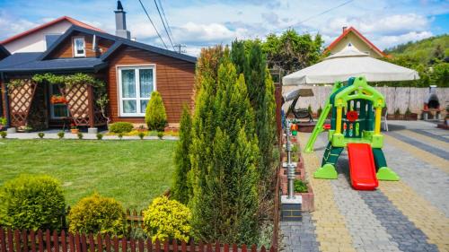 Domek Adam offers accommodations in Lesko, 11 miles from Skansen Sanok and 11 miles from Zdzislaw Beksinski Gallery. Providing a family-friendly restaurant, the property also has a private beach area and a garden. There's an outdoor fireplace and guests have access to free Wifi, free private parking, and an electric vehicle charging station. Featuring a terrace and mountain views, the country house includes 2 bedrooms, a living room, satellite flat-screen TV, an equipped kitchen, and 1 bathroom with a walk-in shower. Guests can enjoy an ambient stay in their soundproof room with parquet floors and a fireplace. The property has an outdoor dining area. During warmer months, you can make use of the barbecue facilities and eat on the private patio. Activities such as skiing, fishing, and hiking can be enjoyed in the area, and guests can relax along the beachfront. Outdoor play equipment is also available for guests at the country house. Sanok Castle is 11 miles from Domek Adam, while The Solina Dam is 12 miles from the property. The nearest airport is Rzeszów-Jasionka, 62 miles from the accommodation, and the property offers a paid airport shuttle service.